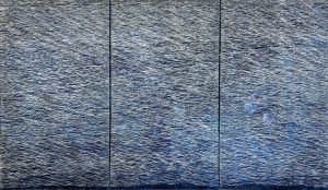 Annette-Selle_Blue-Memories-03_2024_Öl-und-Pigmente-auf-Leinwand_140x240cm_dreiteilig
