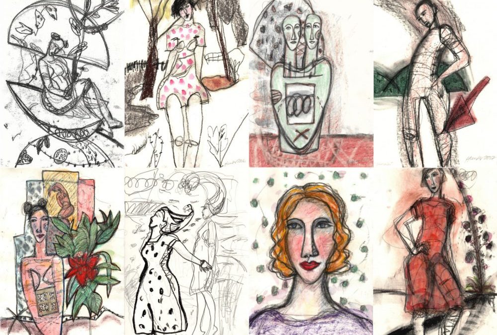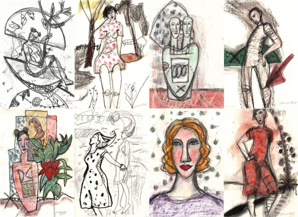 Margaret Hunter in aquabitArt Galerie, Bilderkollage, Zeichnungen