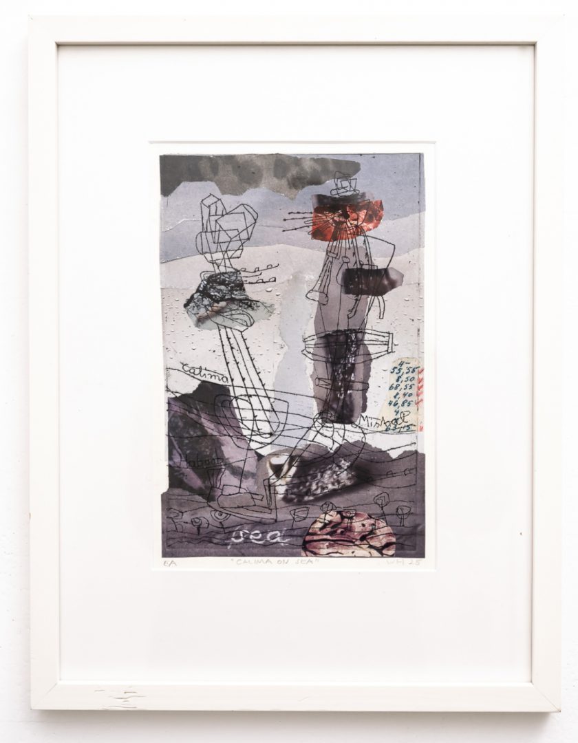 “Calima on Sea” by Wilfried Habrich is a collaged etching that explores atmosphere and movement through layered textures and precise composition. The title “Calima” refers to a dusty, warm wind from the Sahara, introducing a sense of environmental influence and subtle shift. As with his other works, the title provides an additional conceptual dimension, inviting open interpretation. The piece’s compact size and structured design showcase Habrich’s meticulous approach to contemporary printmaking.