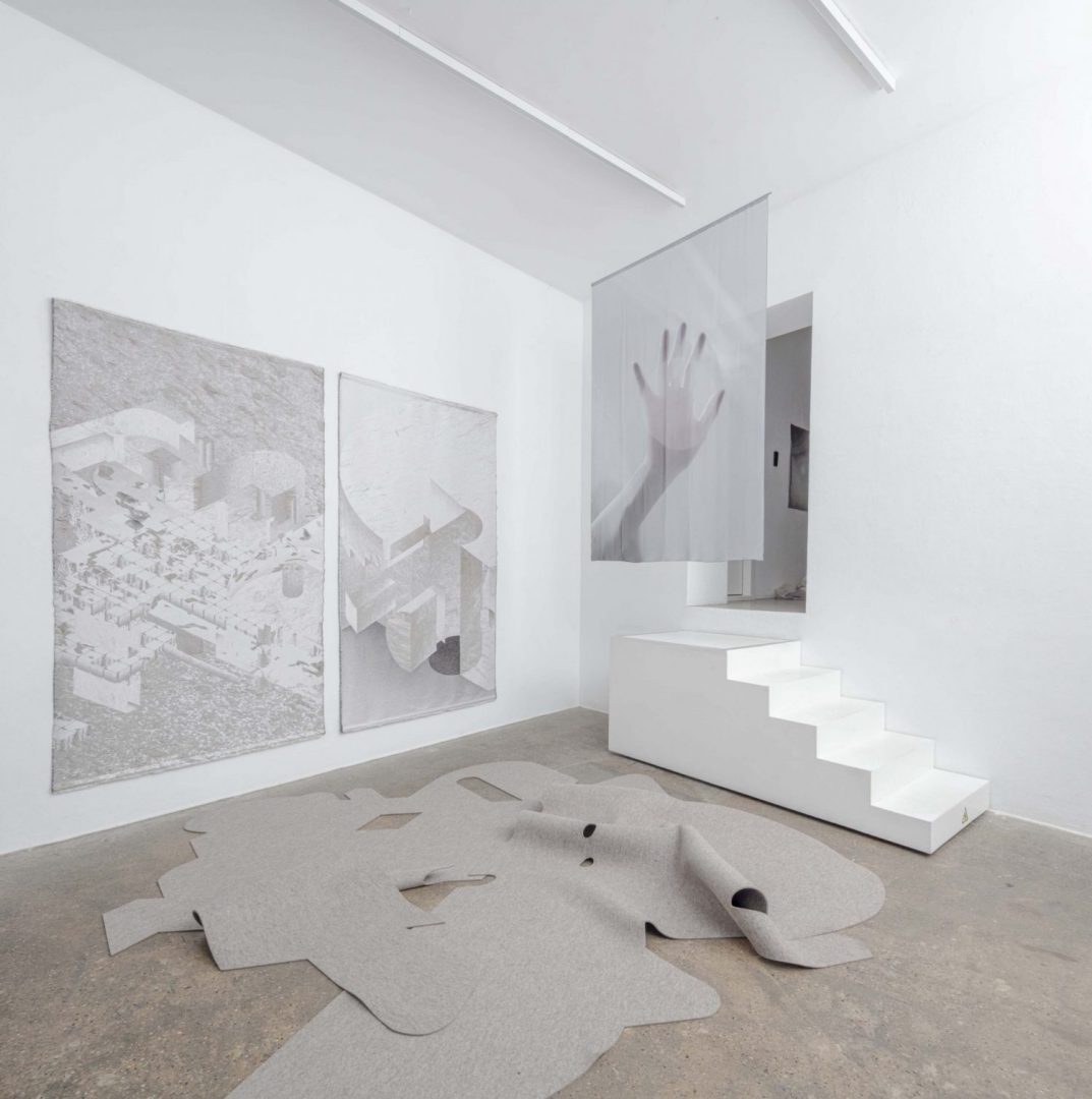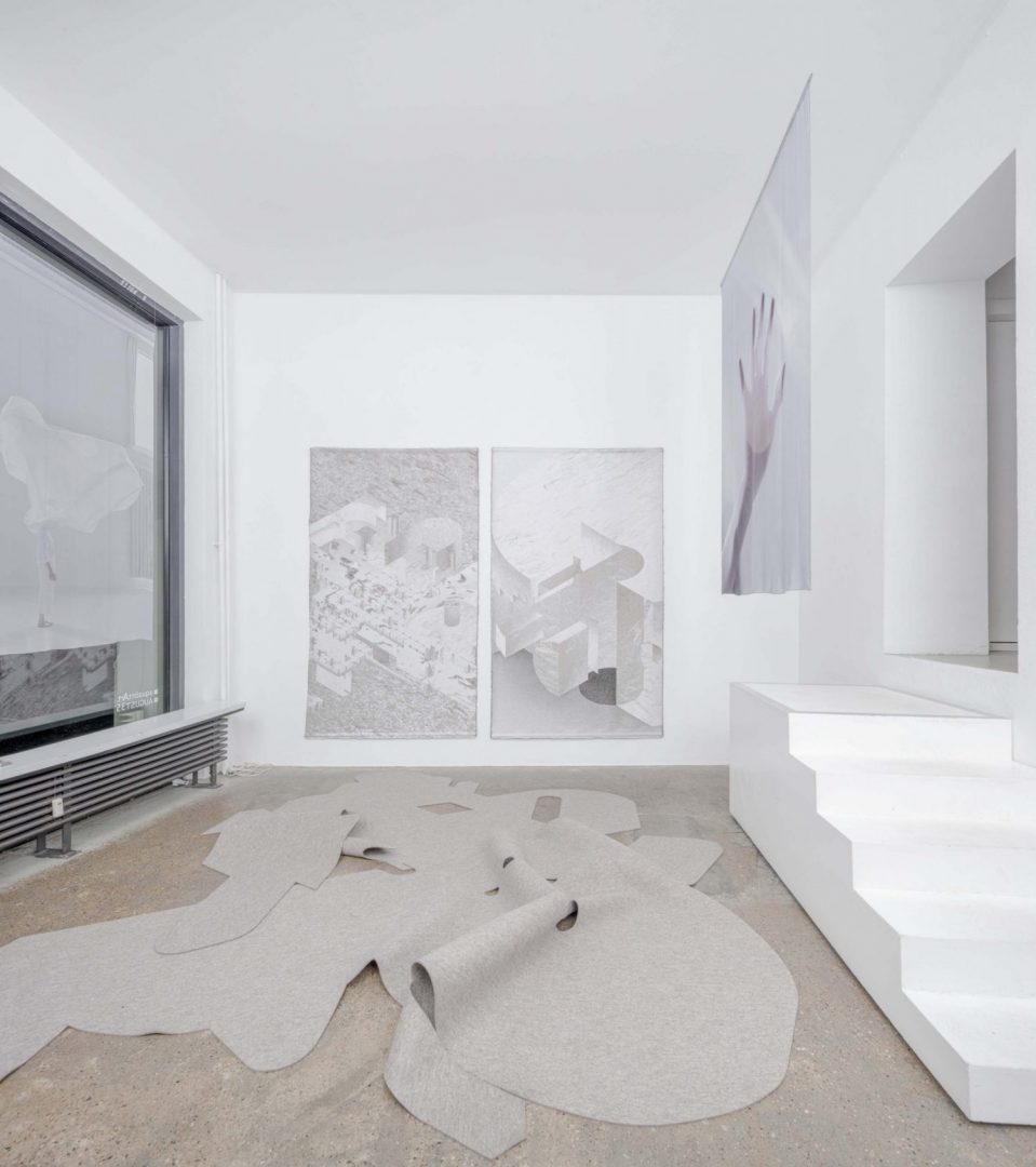 In her work, Gabi Schillig experimentally explores space and architecture as extensions of the living body—as responsive, dynamic mediums of communication. space is not static or immobile, but alive and evolving, deeply interwoven with human presence and bodily experience. bodies, spaces, and actions are not distinct entities, but mutually dependent and intimately connected. Her work centers on the creation of soft, ephemeral architectures— textile shells, spatial structures, skins, and sometimes almost immaterial membranes—that challenge rigid spatial boundaries. these soft architectures act as spatial mediators, transforming inside and outside into fluid, permeable zones. They invite tactile and embodied dialogues, enabling new ways of being in space – from digital imaginary drawings, photography, spatial installation, performance, videos and woven textiles. Softness is a powerful spatial, material and social concept. It allows for adaptability, malleability, and resonance. It embodies fragility, fluidity, and even instability—but within these qualities lies a deep transformative potential: if something is soft it remains open to change. In times of global crisis, where hardness dominates political, social, and ecological narratives, she sees softness as a methodology of transformation—an ethics of care and co-existence. Her work seeks to create soft spatialities: open, protective environments that foster intimacy, tenderness, and mutual awareness between humans, space and other forms of life.